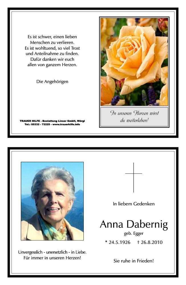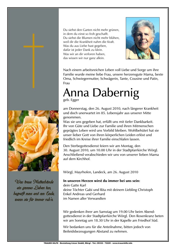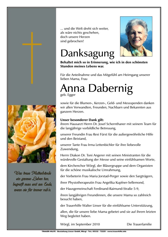 In ewiger Liebe und grosser Dankbarkeit,deine zwoa Diandla