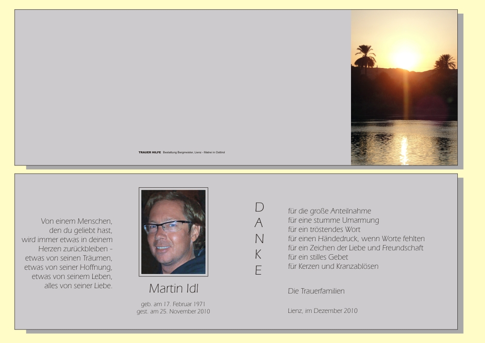 Nach dem Grado-Turnier Ende Oktober fuhr Martin mit uns vom Golfplatz nach Lienz und erzählte uns dabei voller Begeisterung von seinen beruflichen Erfolgen und weiteren großen Plänen. Als er sich in der Stadt von uns verabschiedete, konnten wir nicht ahnen, dass dies unsere letzte Begegnung mit ihm sein würde.