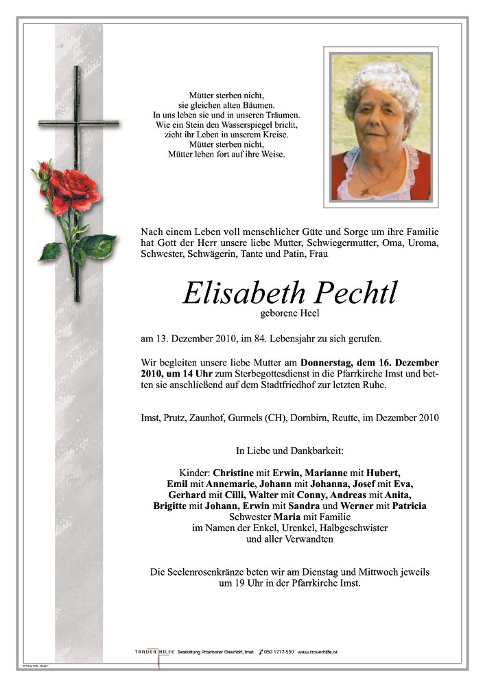 Neue Kerze für Elisabeth Pechtl entzünden.
