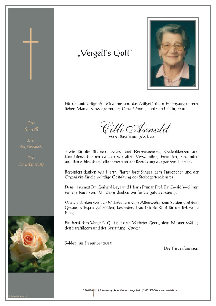 Aufrichtige Anteilnahme entbieten Liliane und Oskar mit Kindern19.12.2010 08:13 - Fam. Schöpf