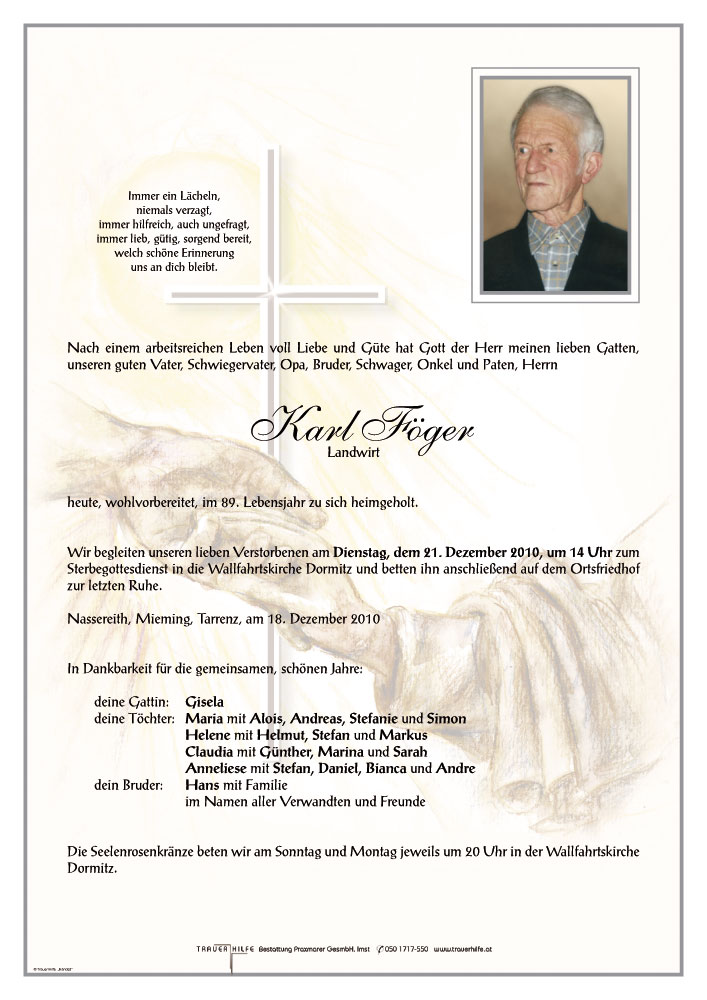 Aufrichtige Anteilnahme entbietet Rosmarie m. Familie21.12.2010 09:31 - Rosmarie Pittl