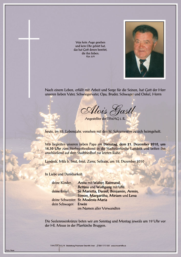 Liebe Trauerfamilie Gastl !
