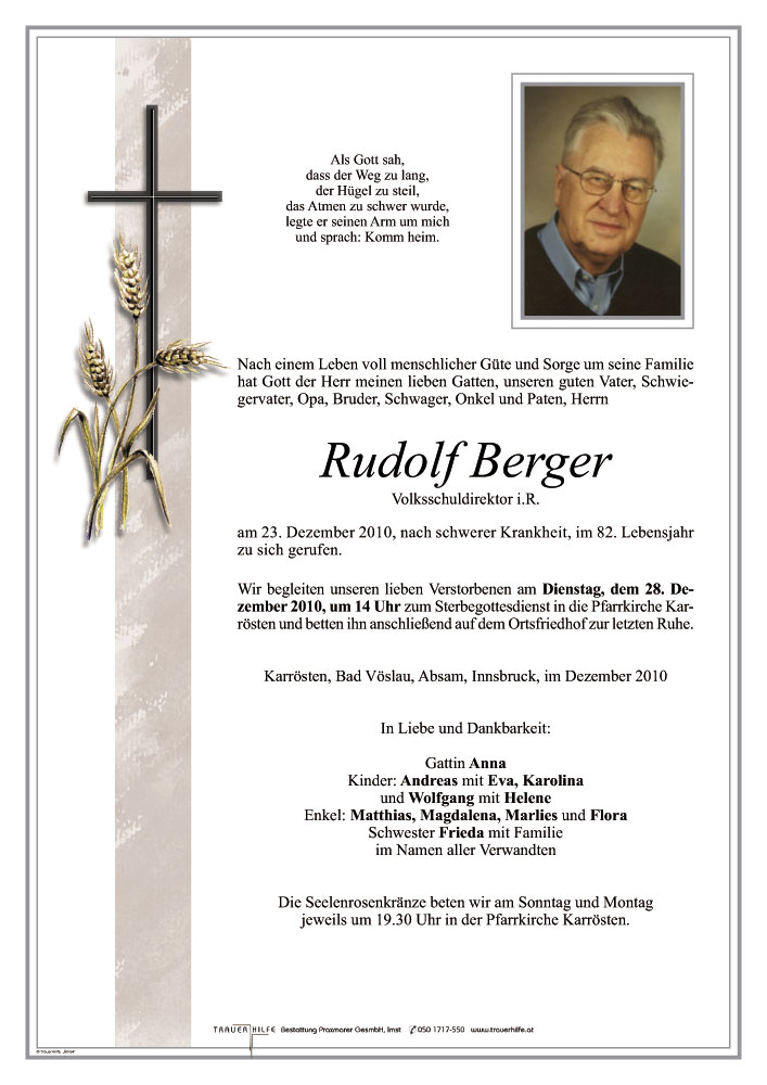 ich glaube nicht, dass es Worte gibt, die es fertigbringen, euch in dieser schweren Stunde zu trösten. Doch seid euch gewiss- jeder der Herrn Rudolf Berger kannte, wird ihn je vergessen.