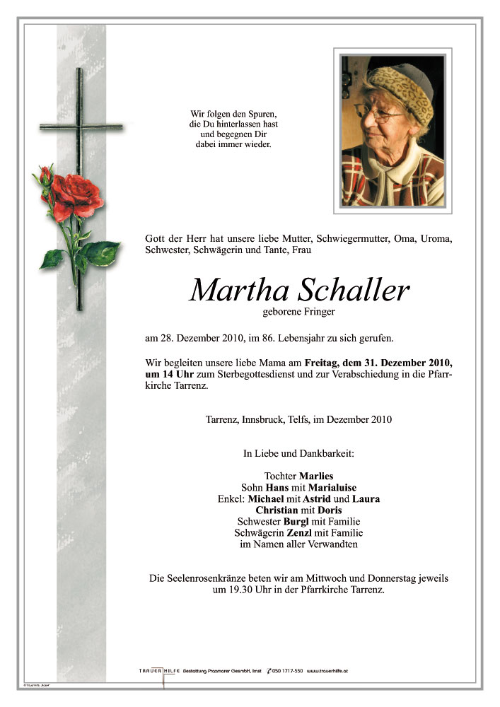 Alles Gute und aufrichtiges Beileid die Nachbarn29.12.2010 18:03 - Monika Gamper-Weinhardt