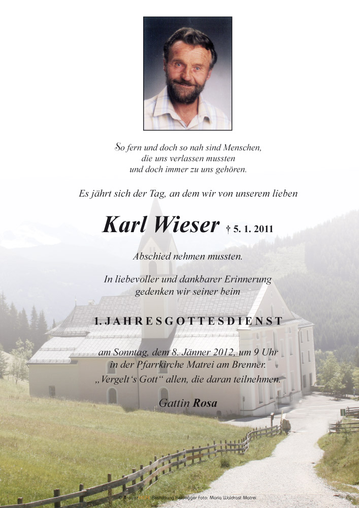 Neue Kerze für Karl Wieser entzünden.