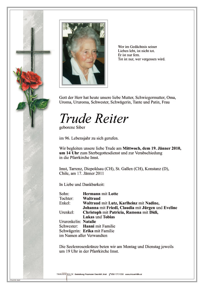 Wenn ein geliebter Mensch von uns gegangen ist, so ist er doch mitten unter uns.