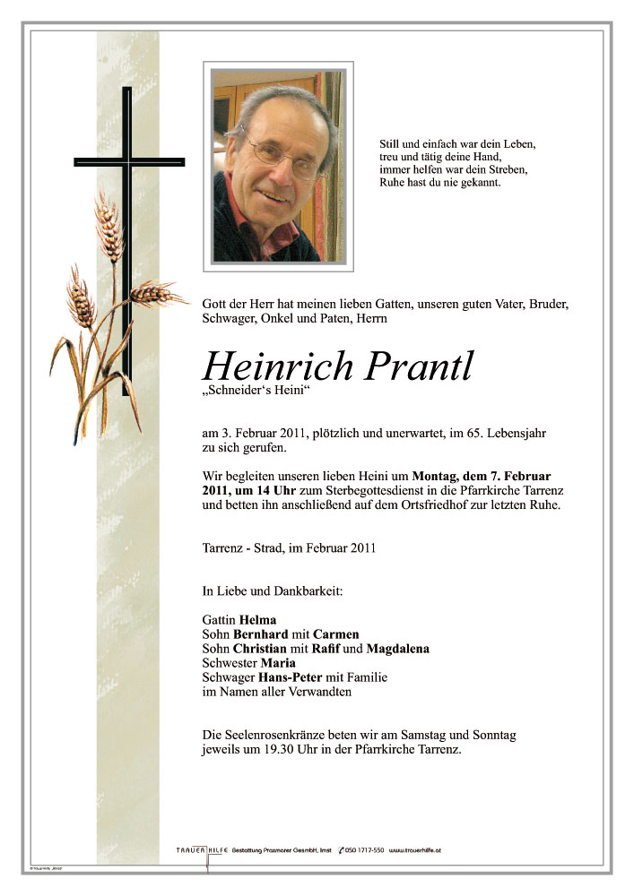 Zutiefst betroffen habe ich erfahren, dass Dein Heinrich die Augen für immer geschlossen hat.