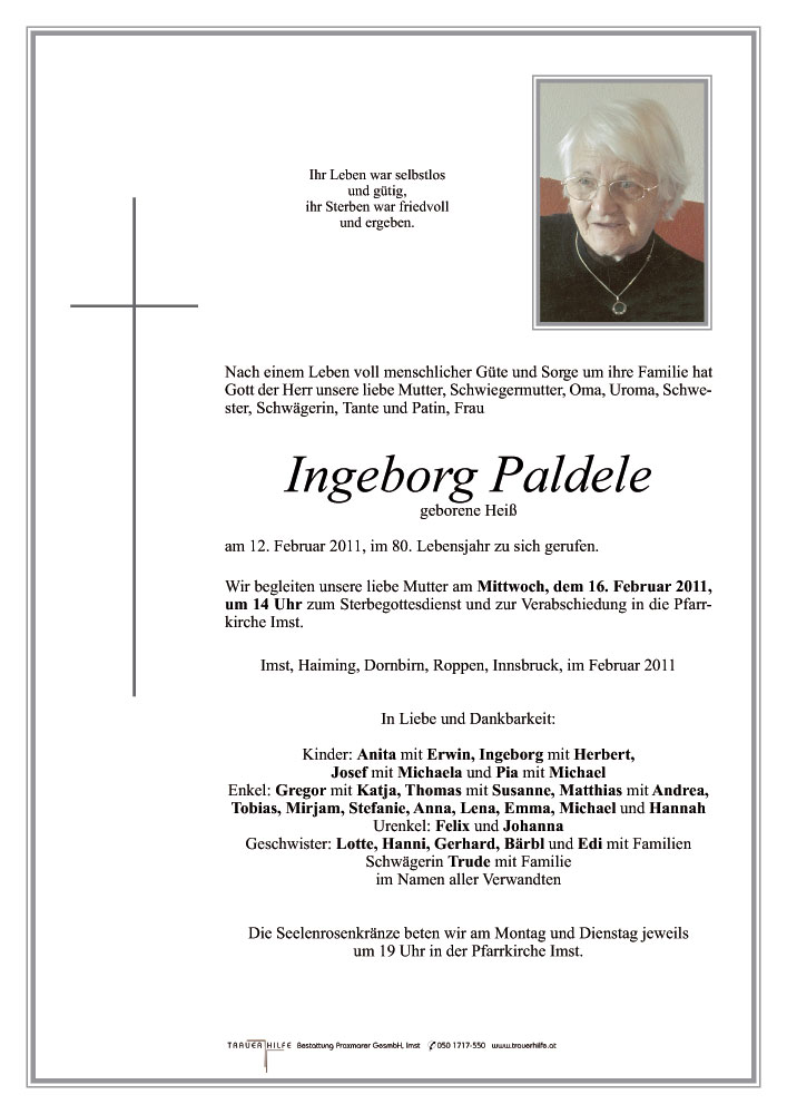 Inge war der netteste und liebevollste Mensch, und es ist schade dass ich sie nicht mehr gesehen habe! ich hoffe sie hatte keine Schmerzen!