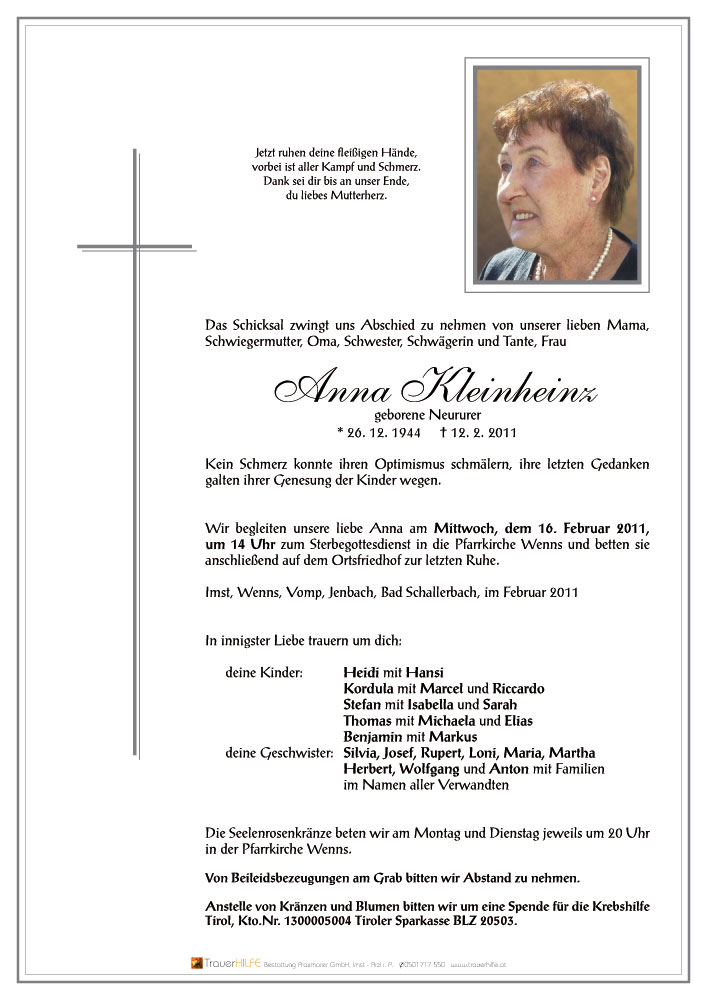 als tausend zu vergießen.15.02.2011 08:40 - Hechenberger Erna m.Kinder