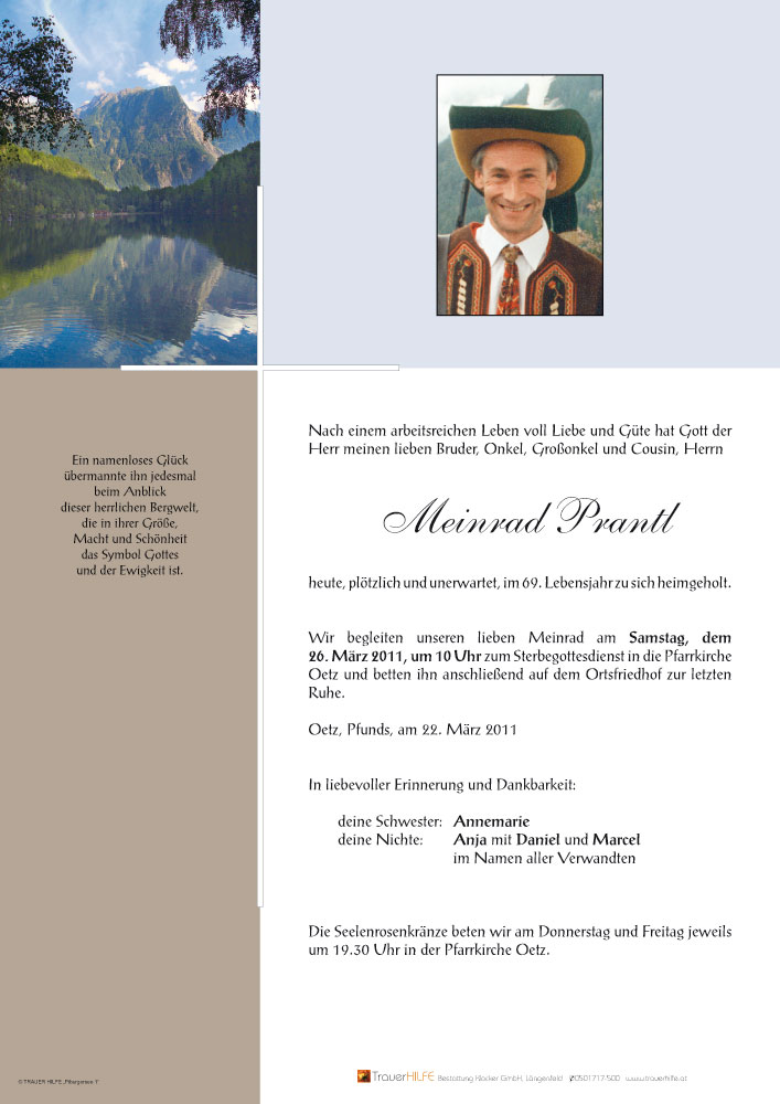 Der Verlust eines lieben und ganz vertrauten Menschen ist immer sehr schmerzlich und macht uns bewusst, dass alles vergänglich ist auf dieser Welt, gibt aber zugleich die Hoffnung auf ein Wiedersehen - irgendwann in einer anderen Welt.