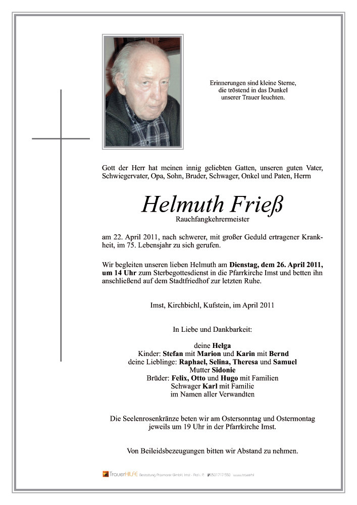 Aufrichtige Anteilnahme entbietet Fam. Waltraud Feichter24.04.2011 10:34 - Fam. Waltraud Feichter