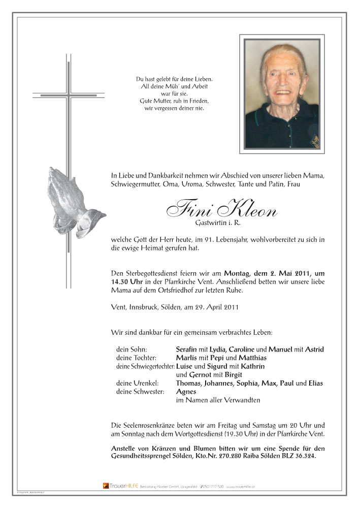 Ihr Beileid entbieten:Annemarie & Franz mit Roland29.04.2011 20:30 - Fam.Klotz Franz