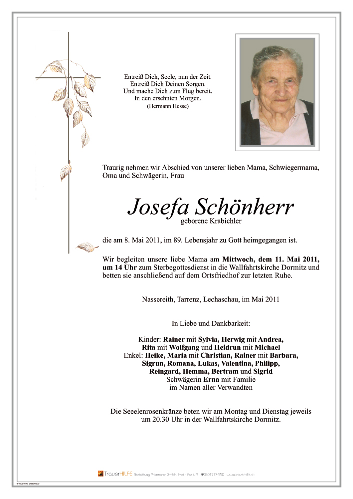 Aufrichtige Anteilnahme am Heimgang eurer lieben Mama und Schwiegermama entbietet Barbara mit Familie