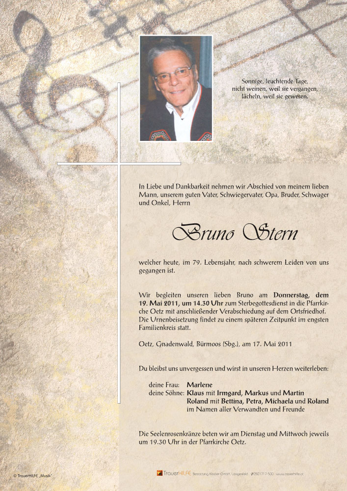 Die Todesnachricht von Bruno hat auch uns tief erschüttert.