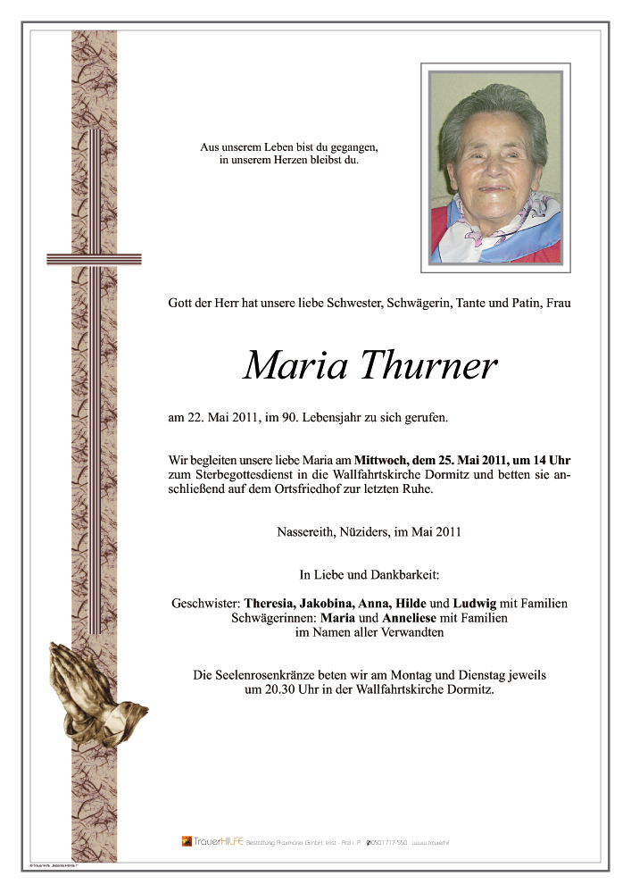 Bestattung wurde durchgeführt von: Daniel Klocker Bestattung Praxmarer GmbH Thomas Walch Str. 4 6460 - Imst Tel.: 05412 64250 zum Bestatter