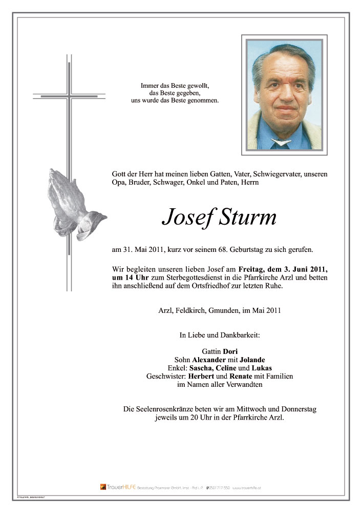 Der einzige Trost in solch schweren Stunden ist, die Gewissheit, dass alles was Sepp leiden ließ, er mit dem Schritt nach oben abgestreifen konnte und nun wieder unbeschwert lachen kann...