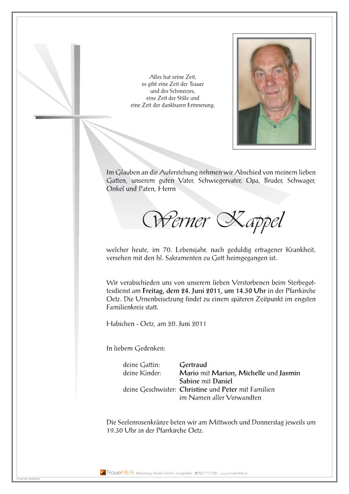 Aufrichtige Anteilnahme22.06.2011 11:16 - Deine Nachbarn Schöpf, Dengg, Kirchebner