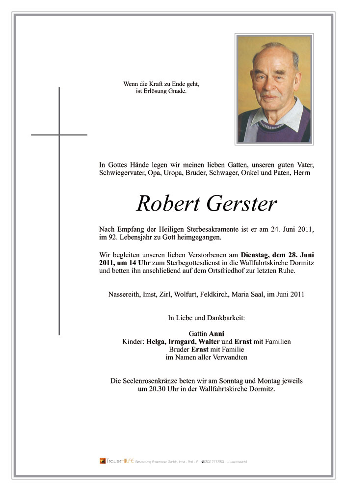 Unsere aufrichtige Anteilnahme entbieten Karl, Alfred und Familie