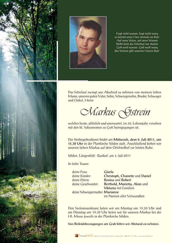Unser aufrichtiges Mitgefühl04.07.2011 18:51 - Fam. Markus GSTREIN, Vent