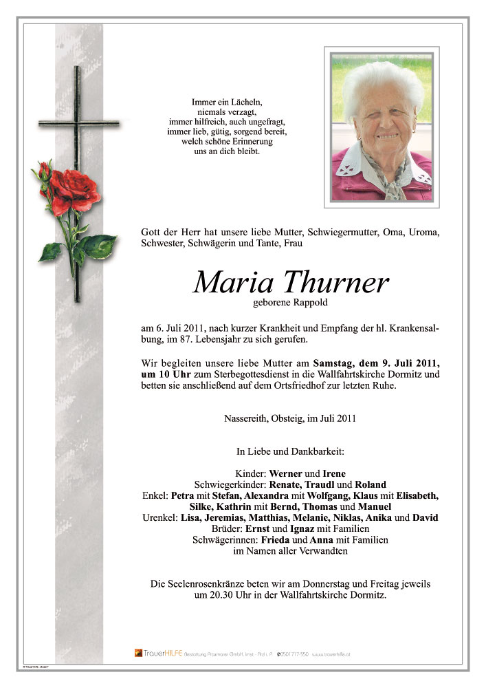 Aufrichtige Anteilnahme Martina Kern Schönherr24.05.2011 19:42 - Fam.Martina Kern Schönherr