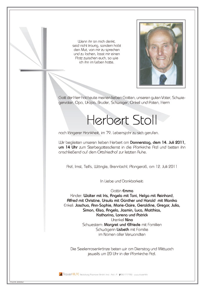 Euer lieber Angehörige, Herbert Stoll, hat es geschafft. Er wartet auf Euch auf der anderen Seite.