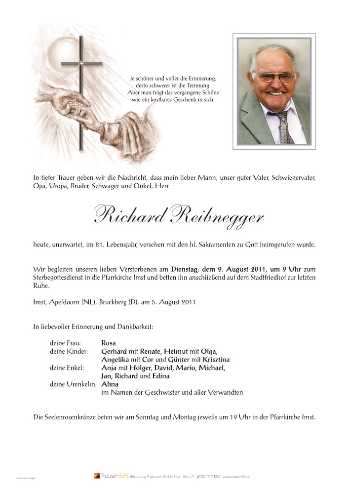 Ihnen, liebe Frau Reignegger und Ihrer Familie wünschen wir für die Zukunft Kraft und alles erdenklich Gute.