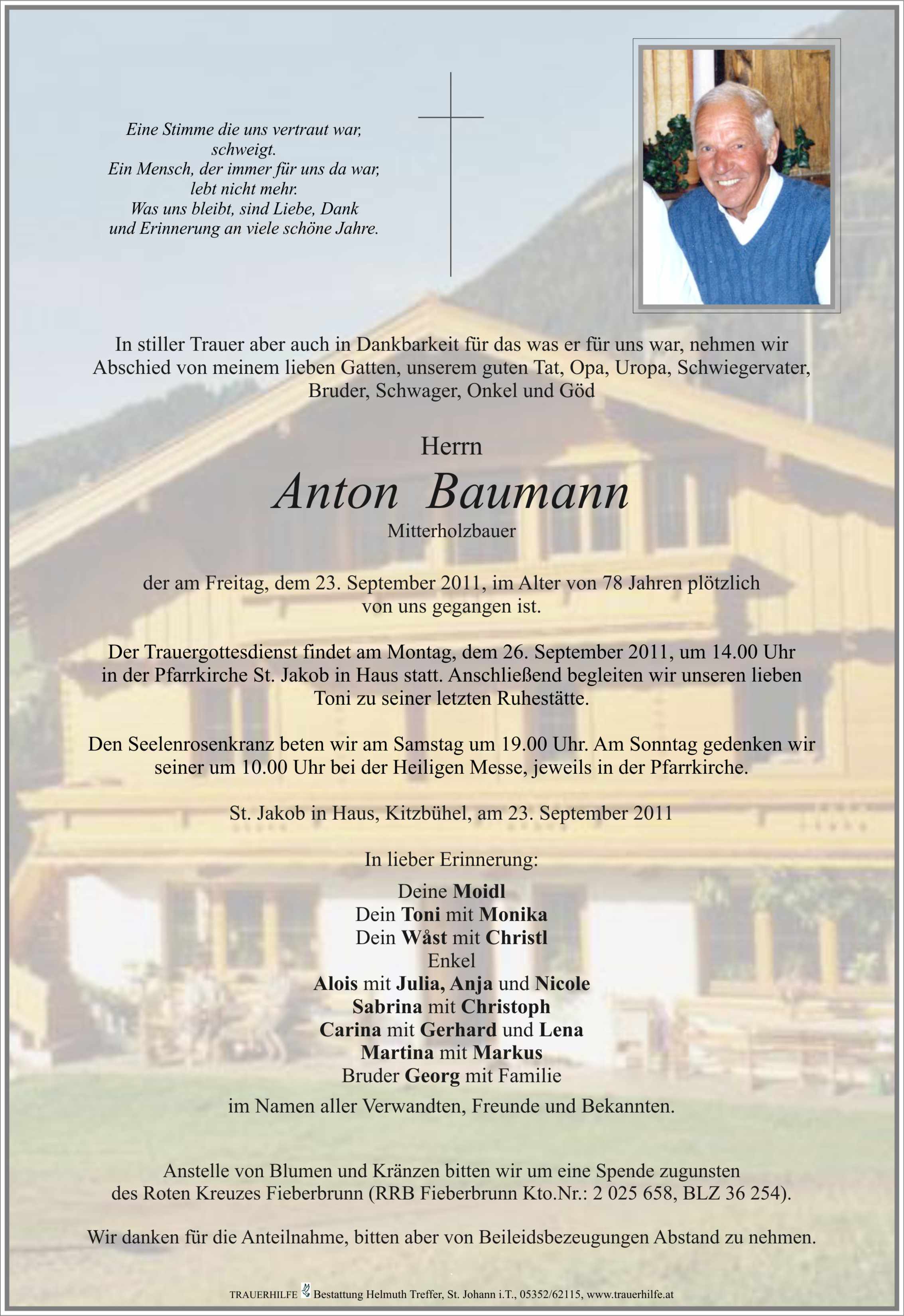 Bestattung wurde durchgeführt von: Bestattung St. Johann Huber-Sturm Bestattung St. Johann Huber-Sturm Bestattung St. Johann Huber-Sturm GmbH Salzburgerstraße 27 6380 - St. Johann in Tirol Tel.: 050 1717 190 zum Bestatter