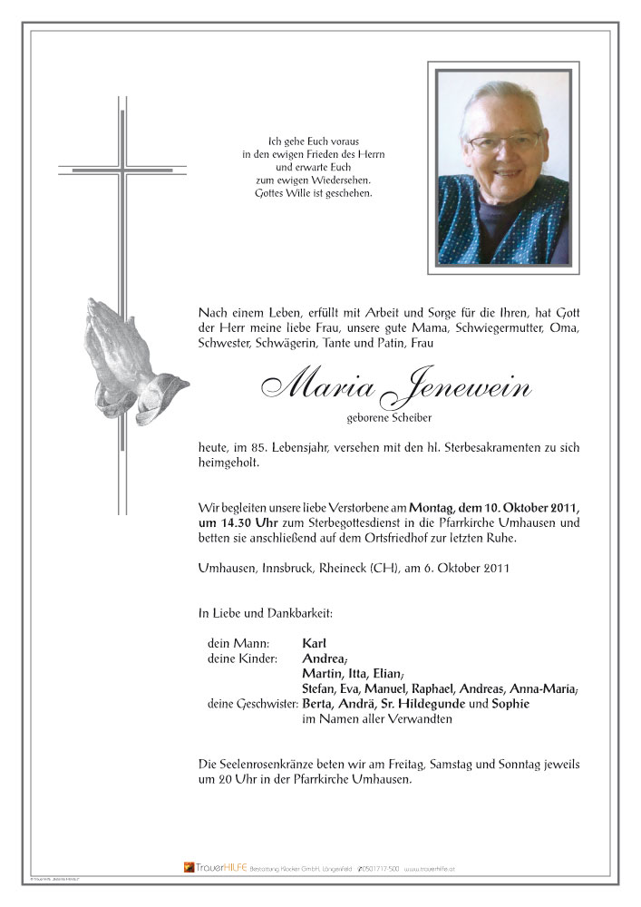 Aufrichtige Anteilnahme entbietet Traudi Klotz aus Tumpen (ehem. Hauptschulabsolv.).
