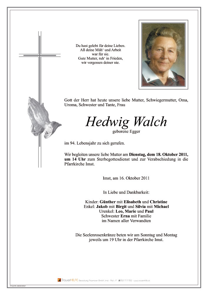 Bestattung wurde durchgeführt von: Daniel Klocker Bestattung Praxmarer GmbH Thomas Walch Str. 4 6460 - Imst Tel.: 05412 64250 zum Bestatter