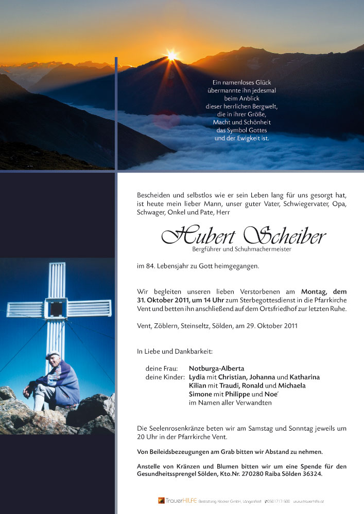 Huberts plötzlicher Tod traf uns mit unendlicher Traurigkeit.Es verband uns eine grosse Freundschaft. Er war für mich ein grosses Vorbild in allen Lebensbereichen.Wir werden die schöne Zeit, mit Hubert und Alberta nie vergessen,und für all das gute was du für uns im Leben getan hast, sagen wir dir nochmals ein ganz grosses Vergets Gott!