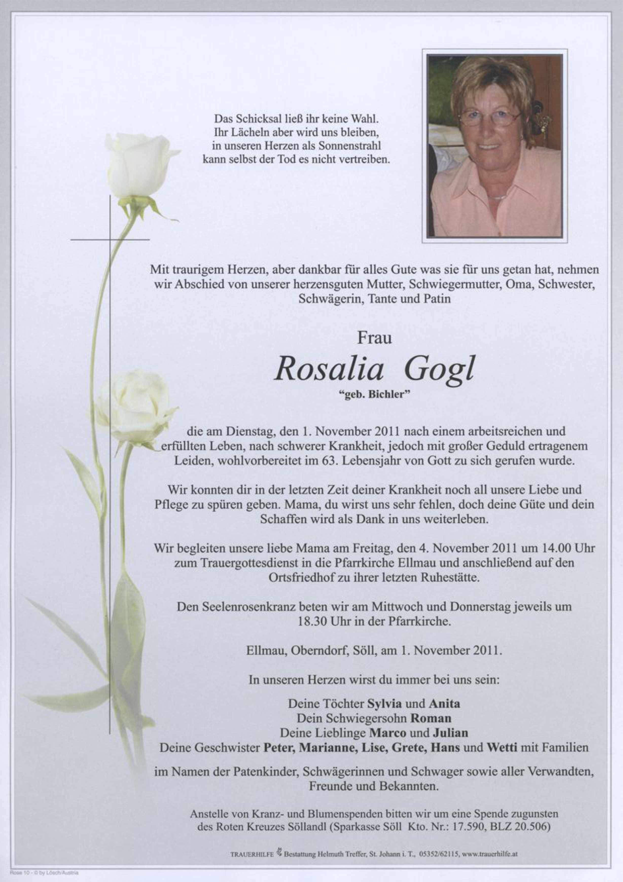 Lb. Rosalia heute an Deinem Namenstag habe ich Dich besonders ins Gebet eingeschlossen.Deine Schwägerin Rosi!
