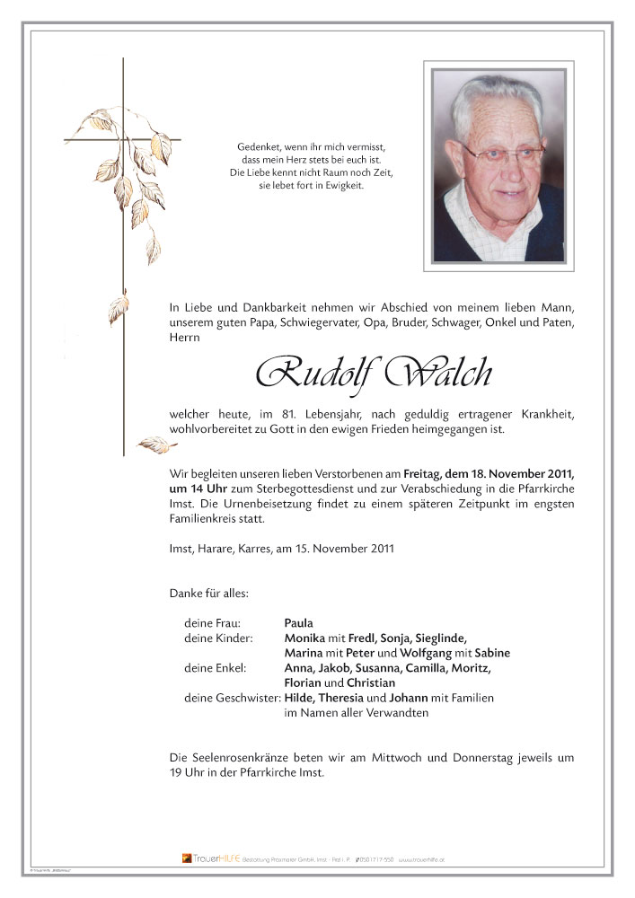 Herzliches Beileid entbieten Maria Wassermann mit Tochter Petra17.11.2011 09:47 - Fam. Maria Wassermann