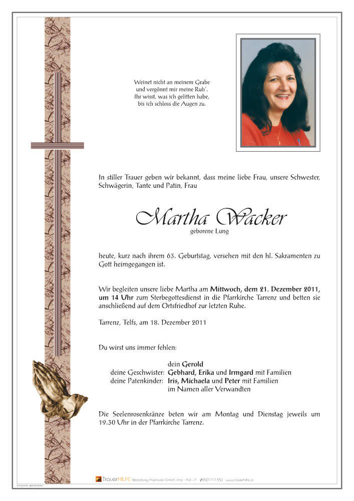 Es ist schwer, in diesen Tagen Worte zu finden. Wir wünschen dir Gerold viel Kraft und Stärke, den Verlust und die Trauer zu bewältigen.