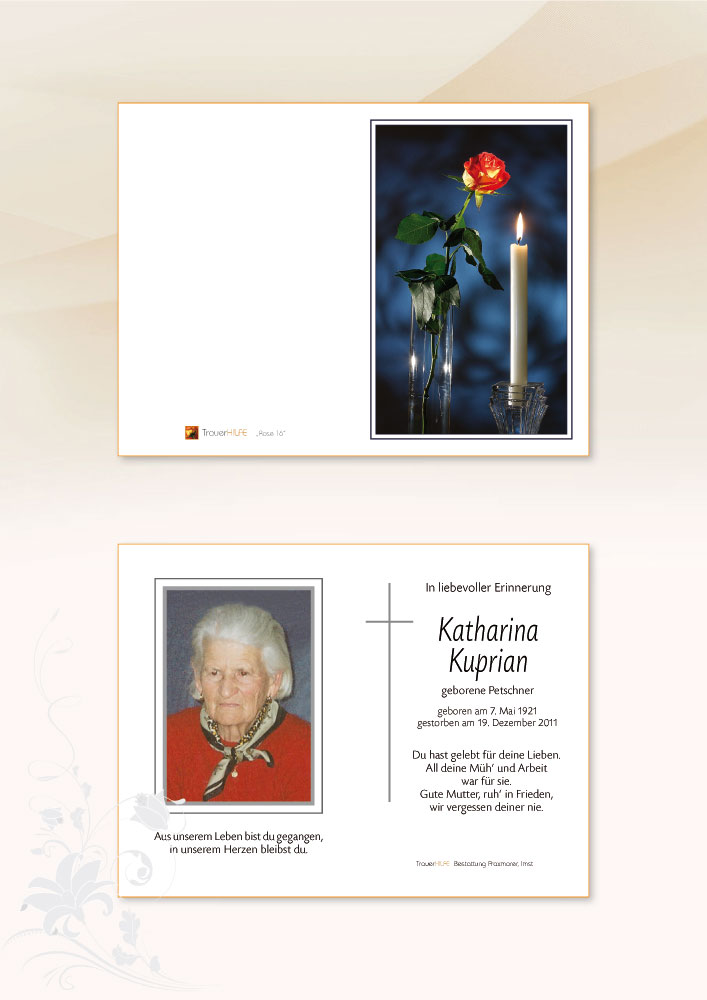 Mein herzliches Beileid zum Ableben eurer Mutter.