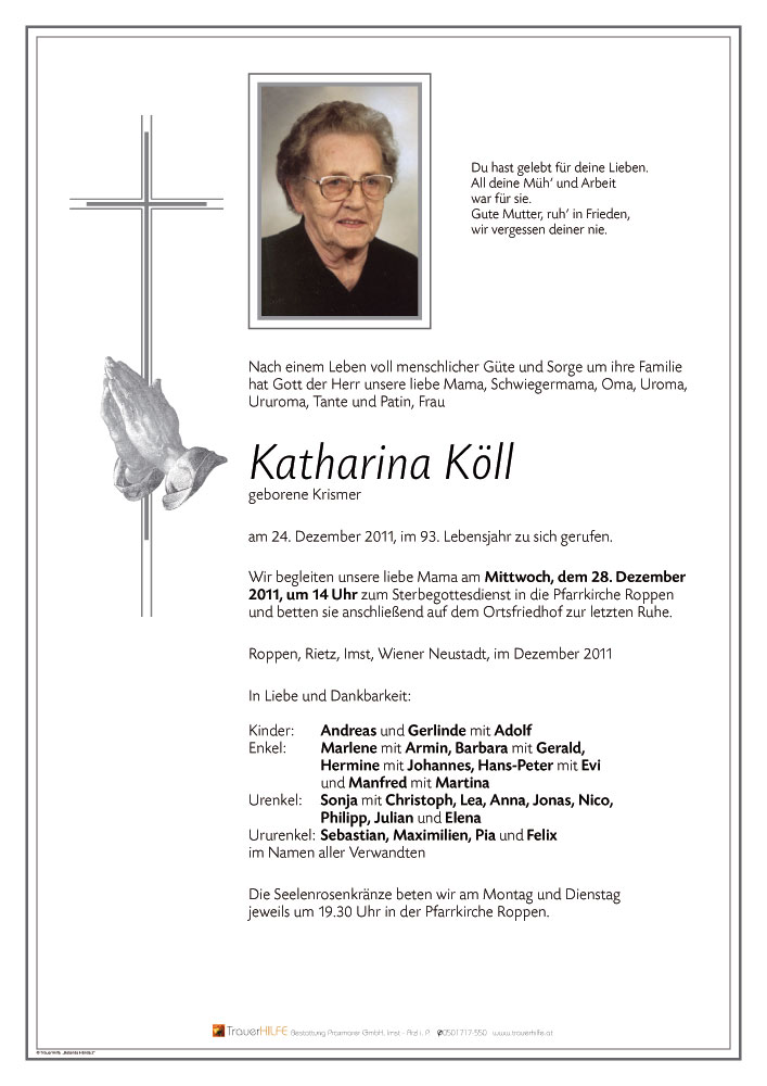 Friedhof Roppen, † 24.12.2011 (92 Jahre)