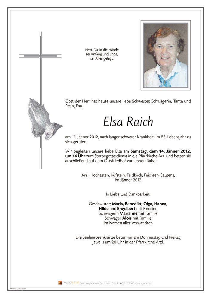 Friedhof Arzl im Pitztal, † 11.01.2012 (82 Jahre)