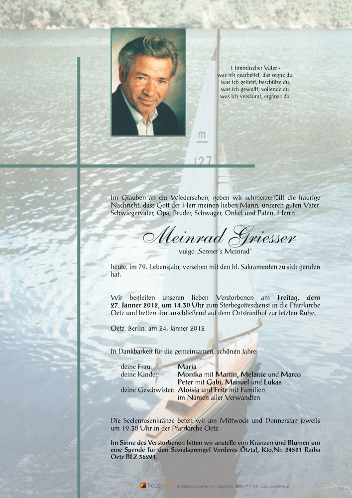 Aufrichte Anteilnahme entbieten25.01.2012 16:28 - Dominik und Christine Schrott