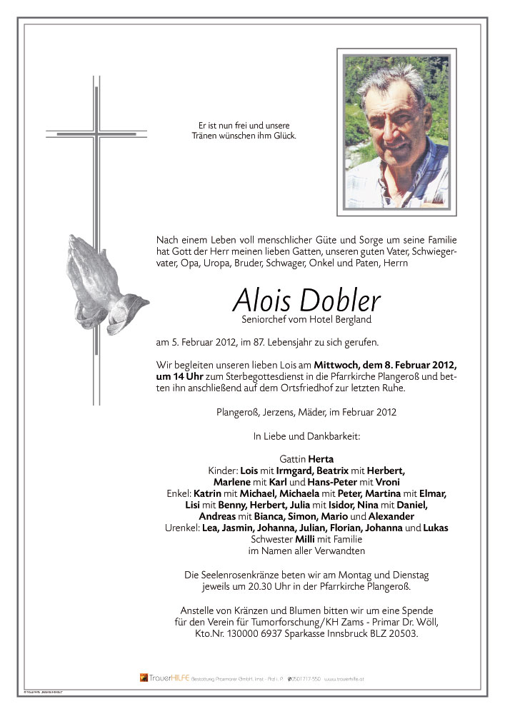 Aufrichtiges Beileid aus Innsbruck sendet euch Walter08.02.2012 14:16 - margreiter walter