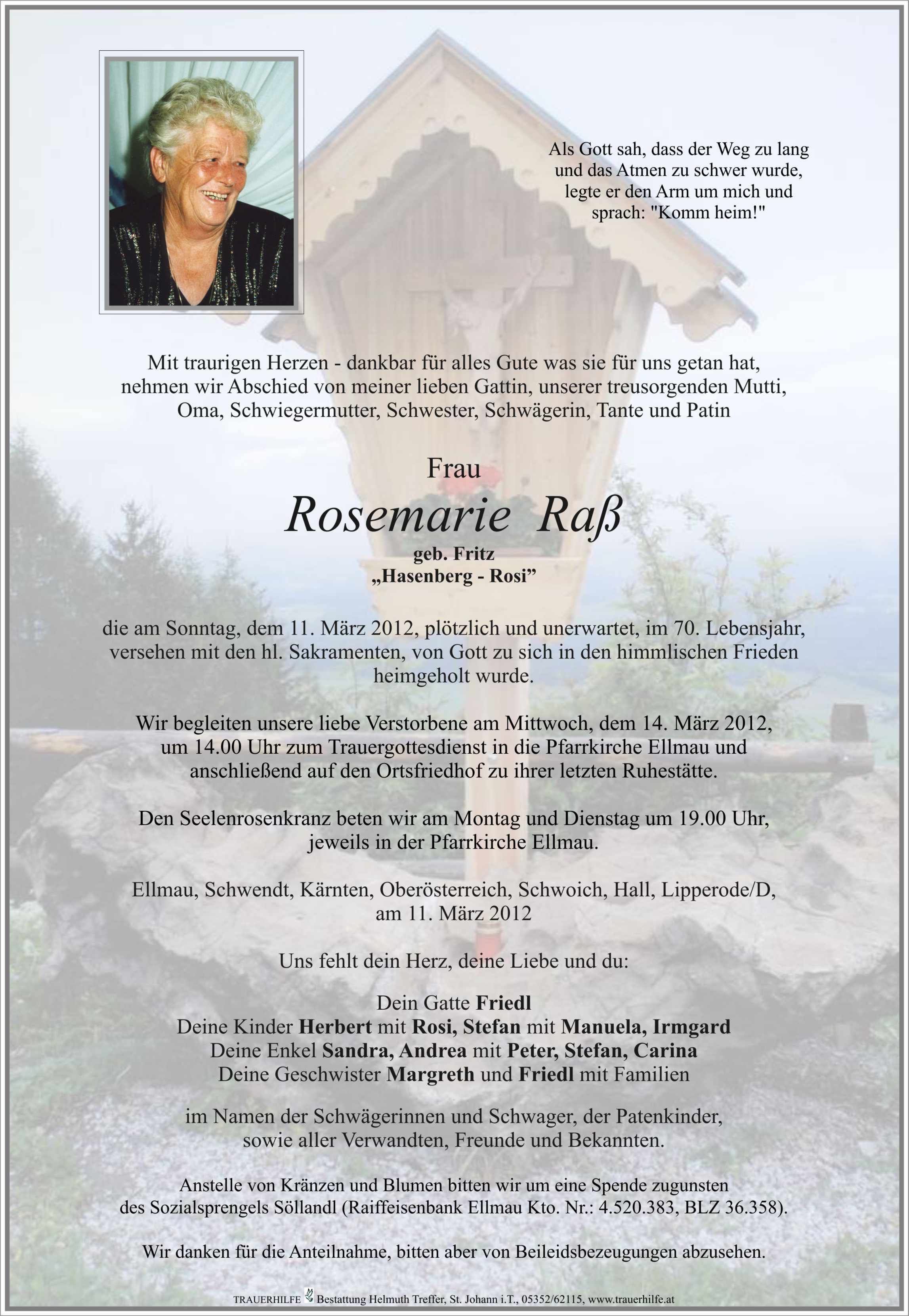 voller entsetzten erfahren wir, dass uns die liebe Rosi plötzlich verlassen hat.