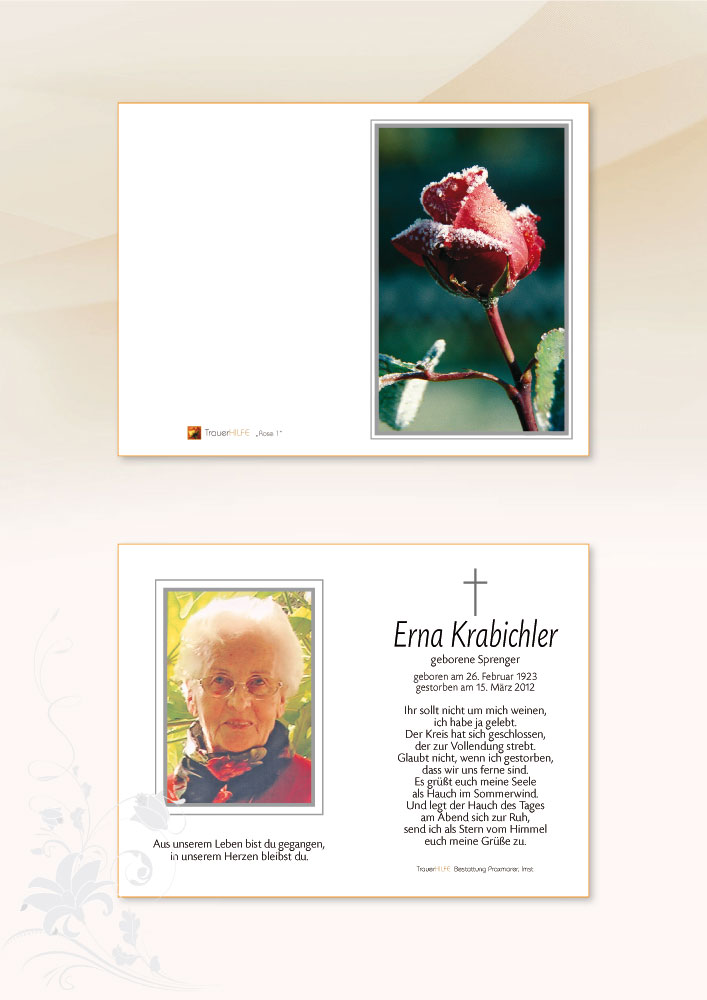 aufrichtige Anteilnahme am Heimgang Eurer lieben Mama entbieten Marina und Peter Schillfahrt mit Susanna, Florian und Christian