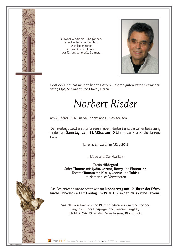 wir möchten euch unser aufrichtiges Beileid zum Tod von Norbert ausdrücken.
