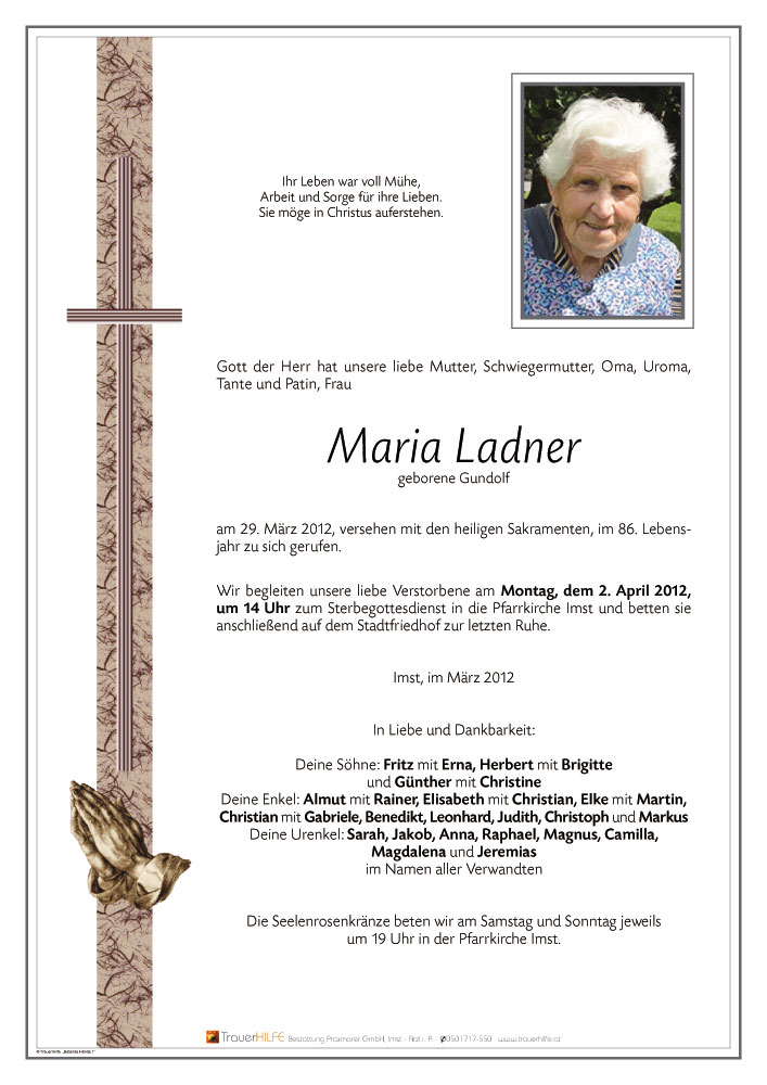 Aufrichtiges Beileid entbieten Jürgen und Daniela Walch mit Familie31.03.2012 20:34 - Fam. Jürgen Walch