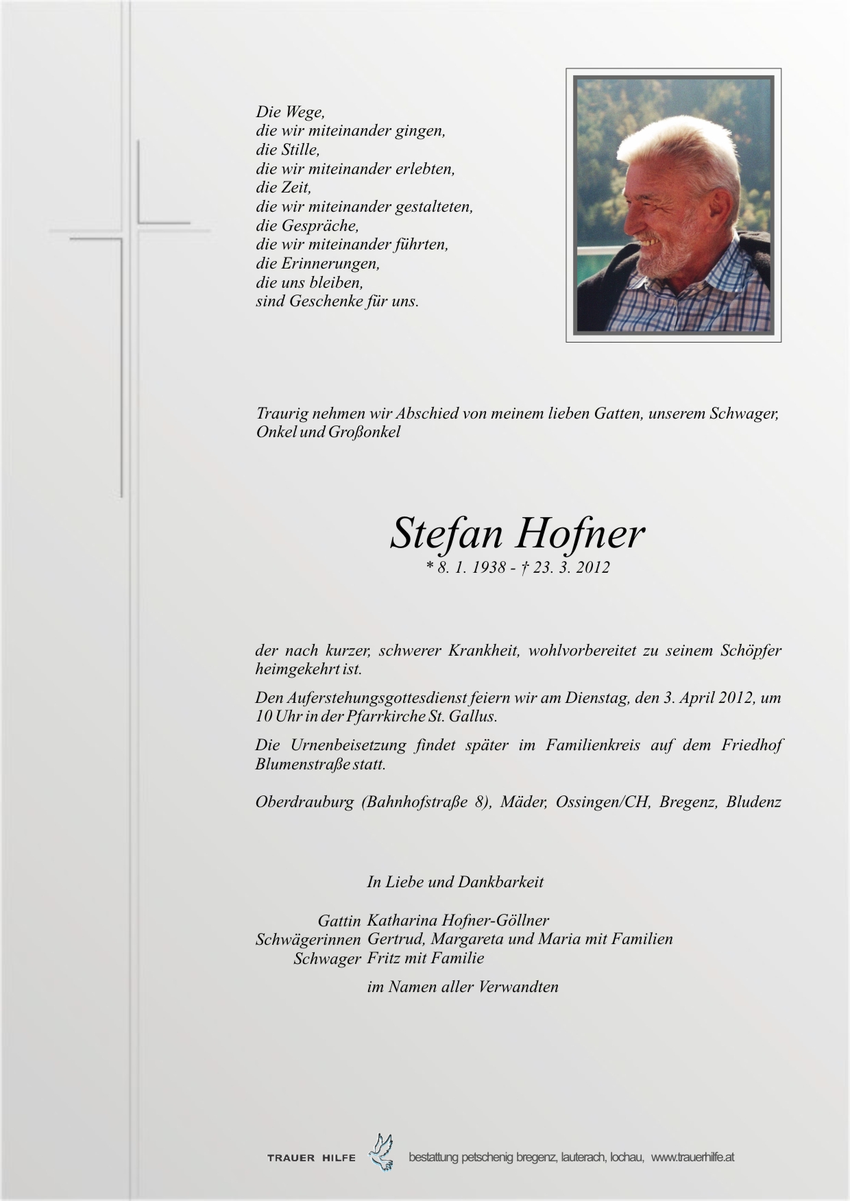 Neue Kerze für Stefan Hofner entzünden.