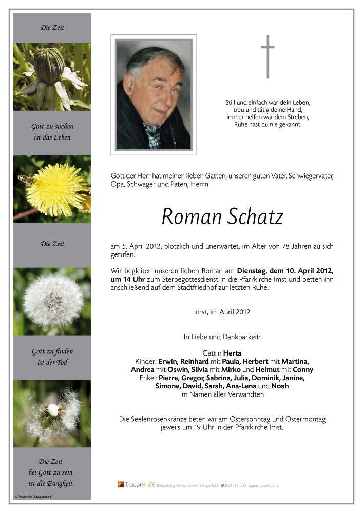 Aufrichtige Anteilnahme entbieten Christof, Birgit, Martin & Bettina06.04.2012 14:24 - Schaber