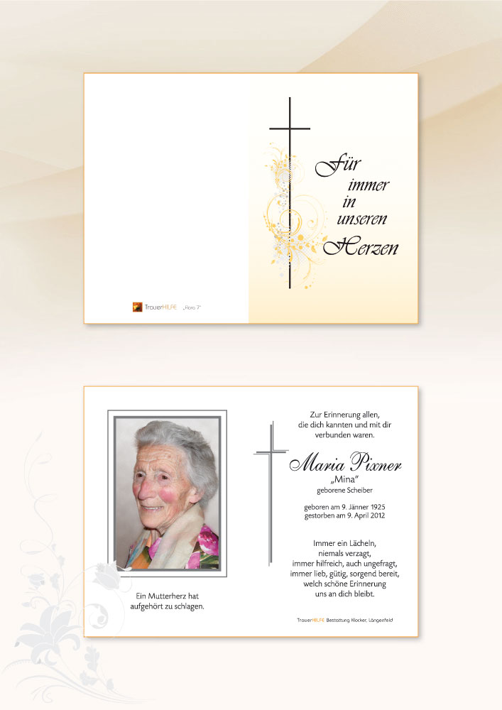 Aber der Gedanke daran, dass sie weiterhin spürbar in euren Herzen und an eurer Seite ist, schenkt Zuversicht und Kraft.