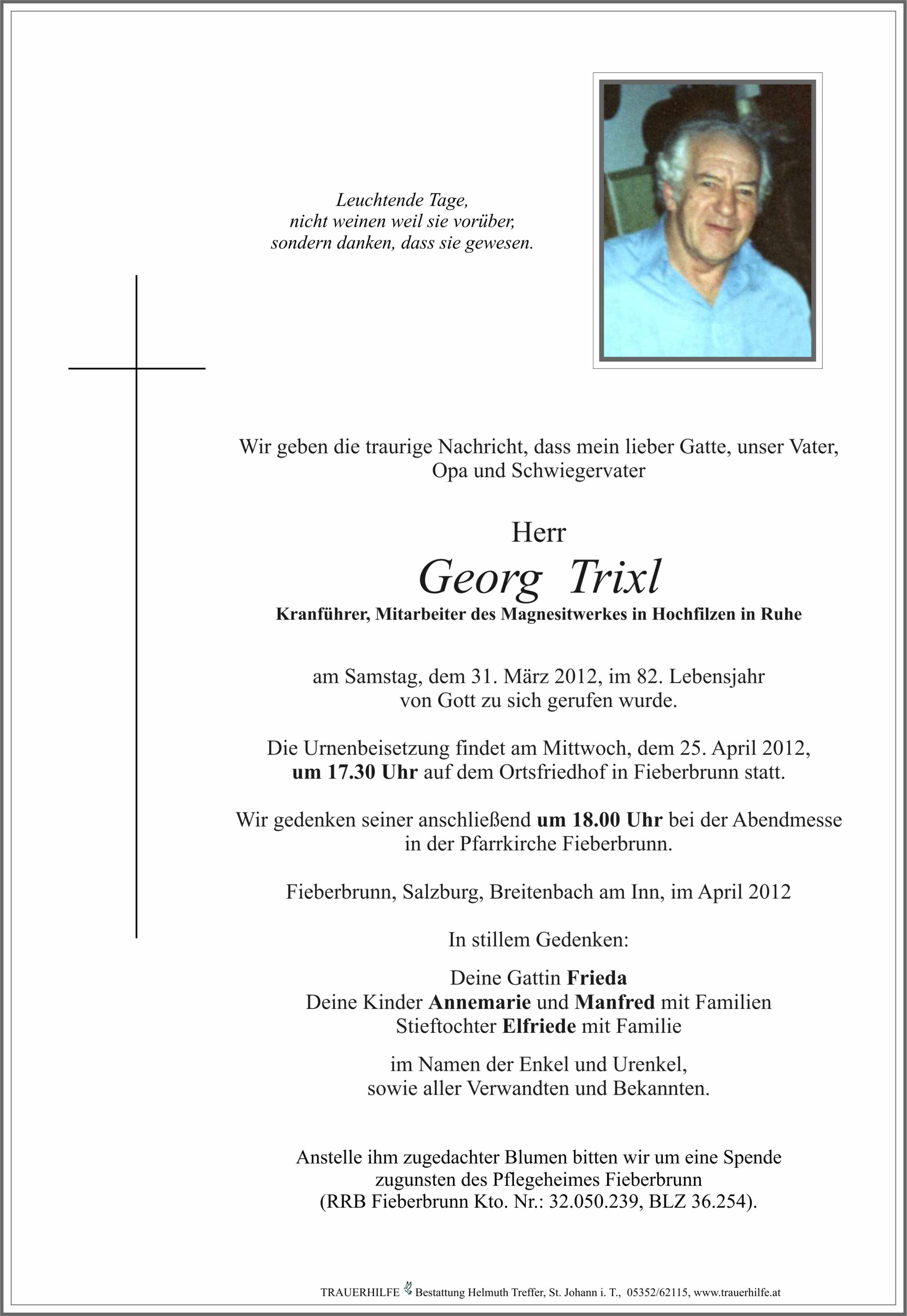 Bestattung wurde durchgeführt von: Bestattung St. Johann Huber-Sturm Bestattung St. Johann Huber-Sturm Bestattung St. Johann Huber-Sturm GmbH Salzburgerstraße 27 6380 - St. Johann in Tirol Tel.: 050 1717 190 zum Bestatter