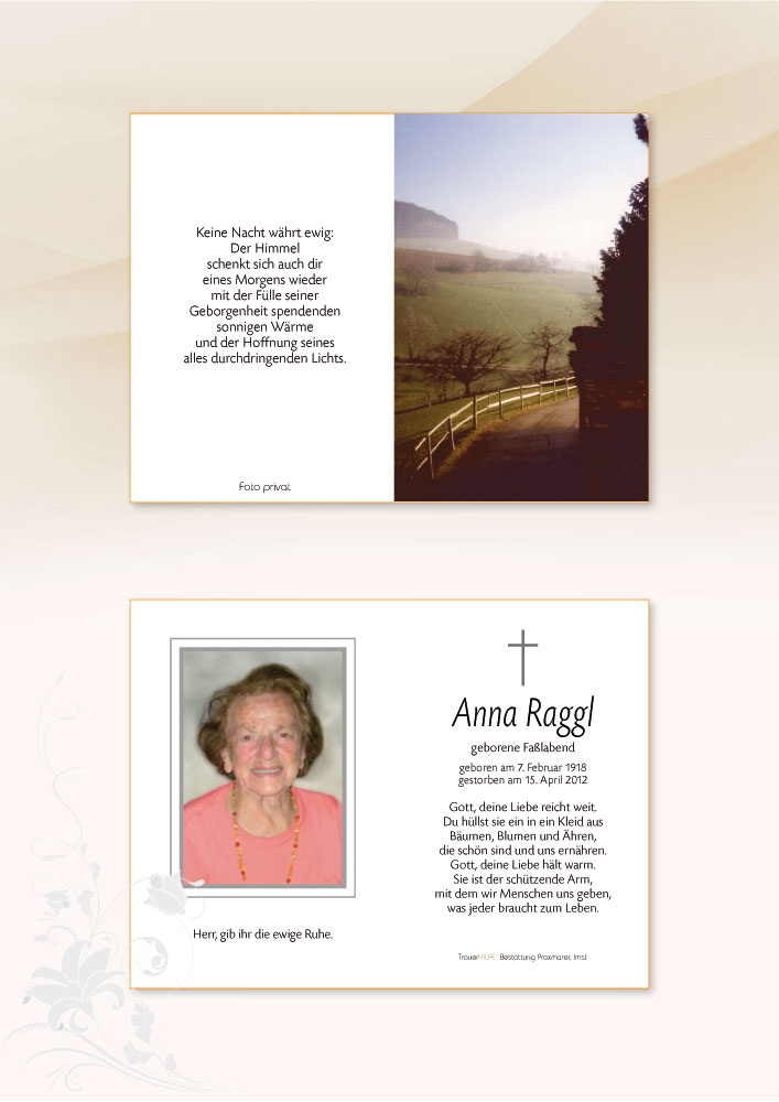 Bestattung wurde durchgeführt von: Daniel Klocker Bestattung Praxmarer GmbH Thomas Walch Str. 4 6460 - Imst Tel.: 05412 64250 zum Bestatter