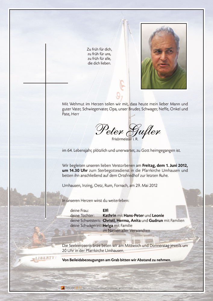 Der Trost sei bei uns allen, die wir Peter vermissen