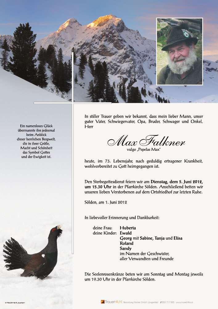 Aufrichtiges Beileid am Tode Eures lieben Max entbieten