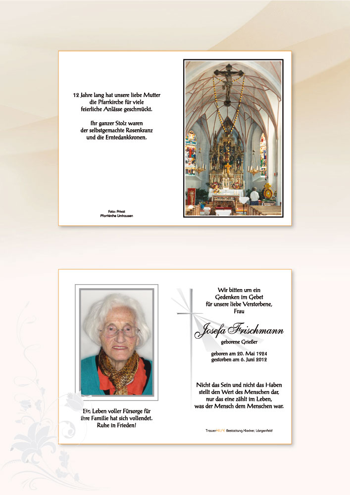 Neue Kerze für Josefa Frischmann entzünden.